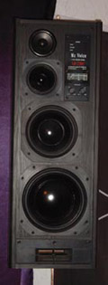 | Bestückt mit einem 25cm Tieftöner sind meine Surrounds grösser als manche Frontbox,was aber nichts zu heissen hat.Trotz grosser Magneten und 25Kg Gewicht ist der Wirkungsgrad erbärmlich schlecht.Für 140DM trotzdem ein guter Fang.An der Wand sind sie mittels Winkeln drehbar aufgehängt und leicht zum Hörplatz angewinkelt. | ||||||||||||||||||||||||||||||