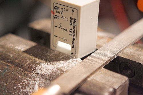 die Schliche kommen. Aber nun zur Konstruktion an sich: Als Alarmschaltung verwende ich auch die Motorradalarmanlage