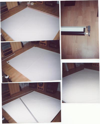 Meine Leinwand hat natürlich auch schon gelitten. Wie man sie elektrifiziert habe ich auf der Extraseite ja schon beschrieben. Hier gibts jetzt noch ein par Bilder vom anbringen des Otto-Rollos. Leider nicht viel zu sehen, aber ihr habt auch nichts verpasst. Das war der grösste Dreck den ich je gemacht habe. *tuchaufkleb, leinwand aufroll und feststellen, dass es nicht passt* das ganze dann mehrmals wiederholen bis das Ende dann gerade ist. | ||||||||||||||||||||||||||