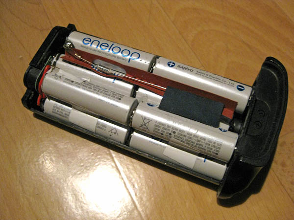 macht man wenn die alten Akkus schlapp machen? Man ersetzt die alten Zellen durch neue Eneloops. Keine schöne Arbeit, aber was die Akkulaufzeit angeht lohnt es sich auf jeden Fall. Das original Ladegerät hat auch keine Probleme mit diesen stärkeren Zellen. |