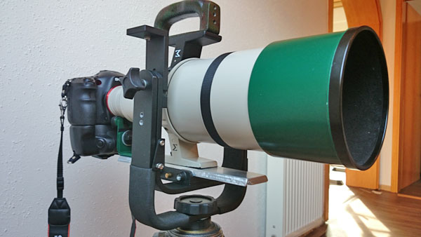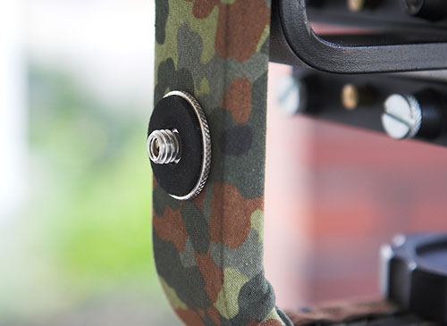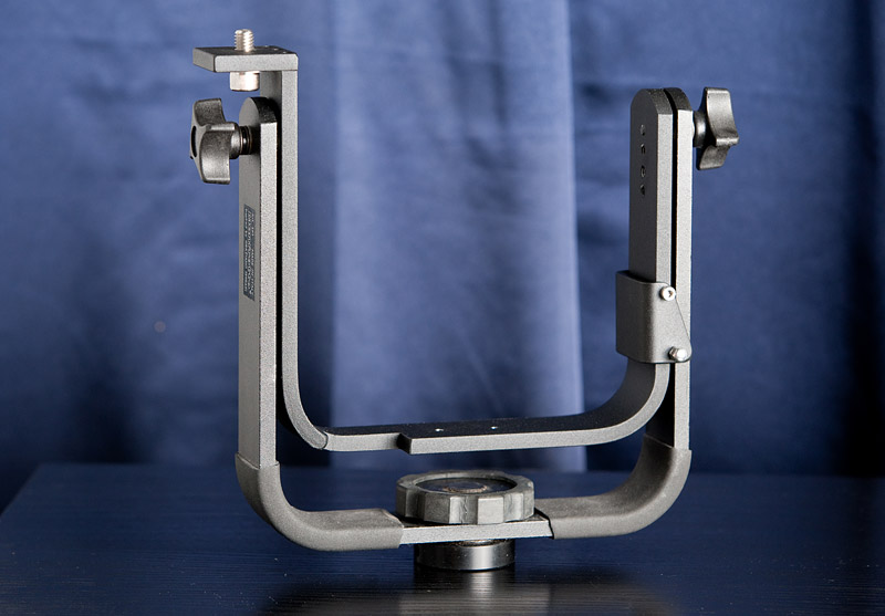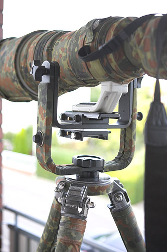 Und so sieht der komplette Bügel aus, wie man erkennen kann ist an der Unterseite noch eine zweite Schnellwechselaufnahme eingebaut worden. Dadurch kann den nach oben gedrehten Bügel auf beiden Seiten mit Objektiven bestücken. | ||||||||||||||||||||||||||||||||||||||||||||||||||||||||||||||||||||||||
